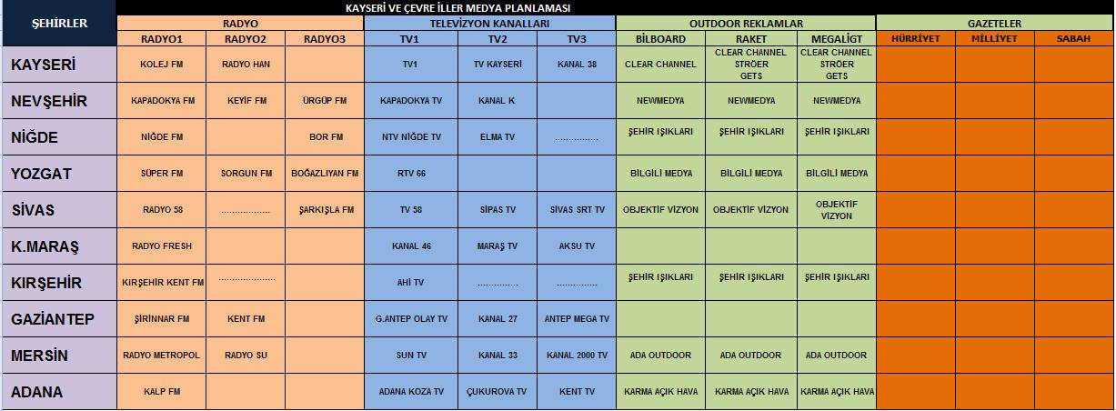 Radyo, TV ve Outdoor reklamlarla ilgili Türkiye çapında, müşterilere yönelik medya planlaması ve satın alması
